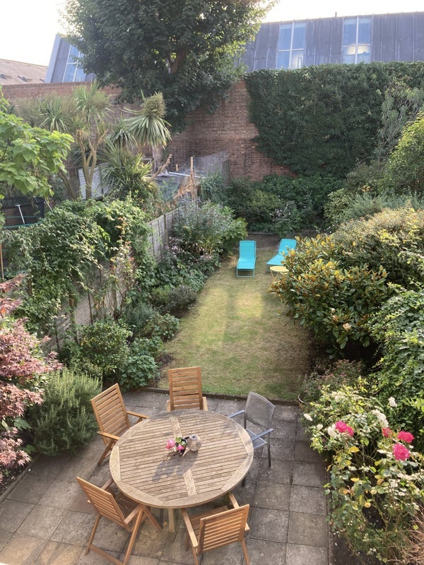 The star of this place is a sweeping garden (23 metres long!) with luscious greenery, wood fire pit and outdoor seating. It’s a 4-bedroom, double-storey place with a kitchen, open plan living area and 1.5 bathrooms. The bedroom is the only bedroom downstairs so there is a bit more privacy.