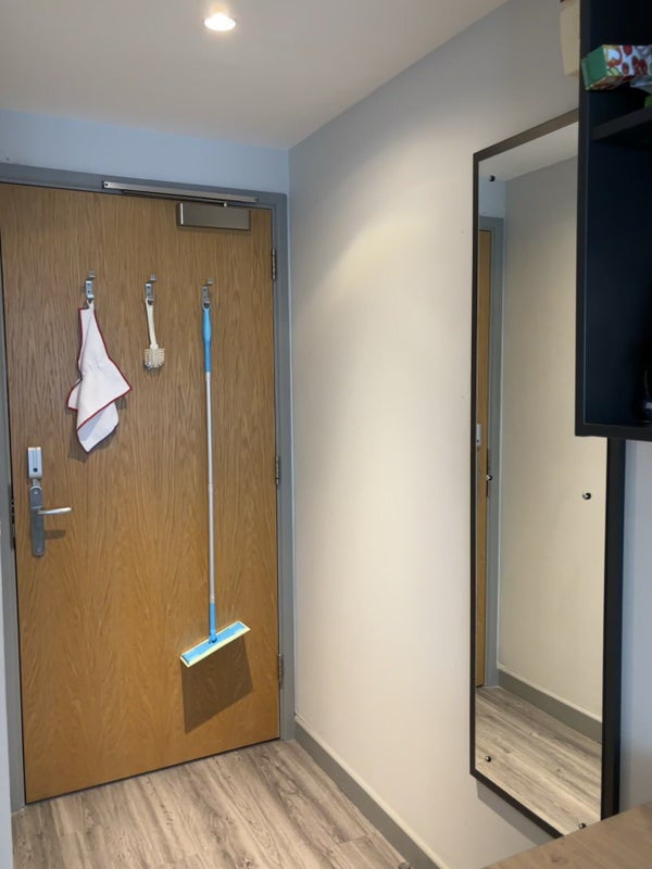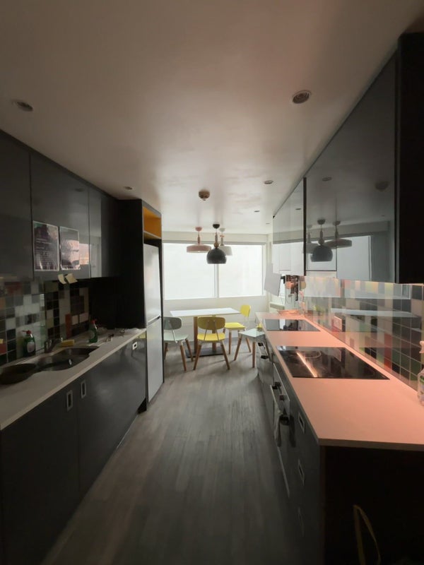 an ensuite, have a own bathroom, share kitchen with other 5 or fewer girls. Almost 90% students in the building are girl. There is a laundry room and a common room on -1 floor. (If you’re interested in this room, Please send me your email so I can contact you)