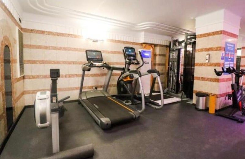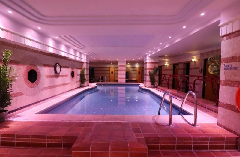 The building is a 1930s Art Deco property with excellent facilities including an indoor swimming pool, gym, sauna, and laundry room with washer and dryer.