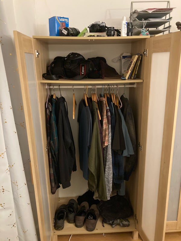 - Two large clothing closets with full sets of clothes hangers