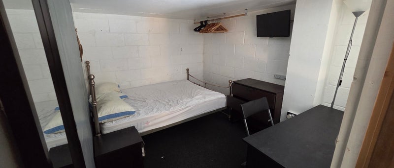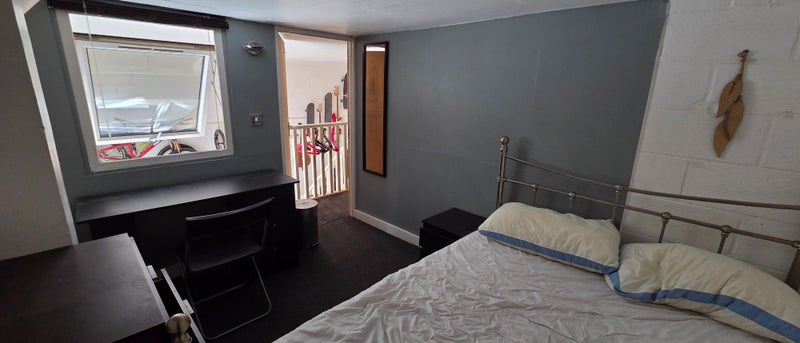 The room is in a converted warehouse, and comes furnished, including a double bed, clothes rail, draws, desk, etc
