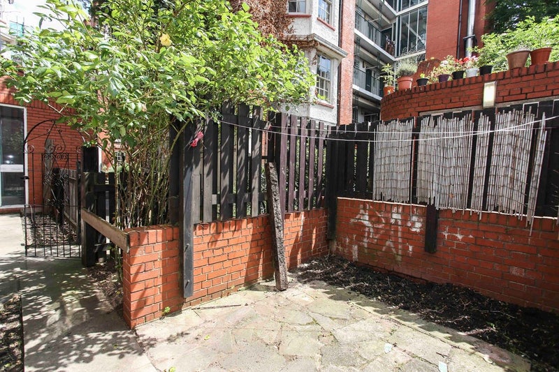 It's a period building with sash windows, high ceilings, and a red-brick exterior. The flat has a lovely, private south-facing garden with table, chairs, and a charcoal barbecue. There is also a larger garden area shared with the neighbours.