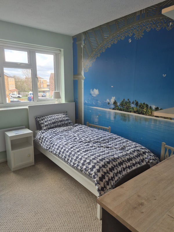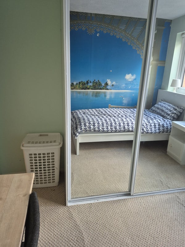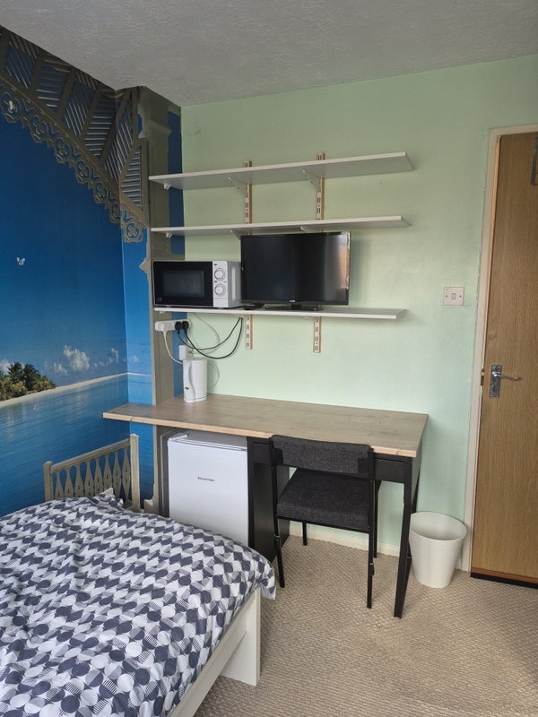 Two bedroom clean quiet house, no throughout road, use of bathroom and fully fitted kitchen, room also fitted with microwave, small fridge, electric cattle, TV, table and chair bed and bedside table, fully fitted wardrobe.