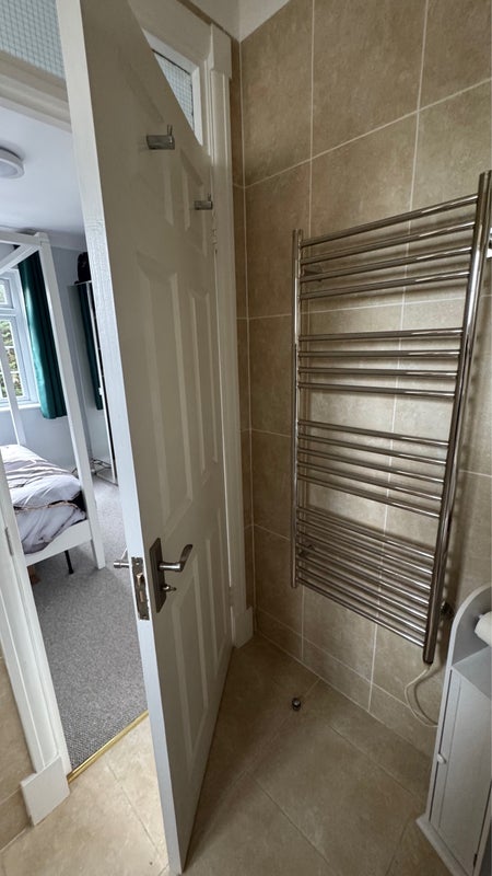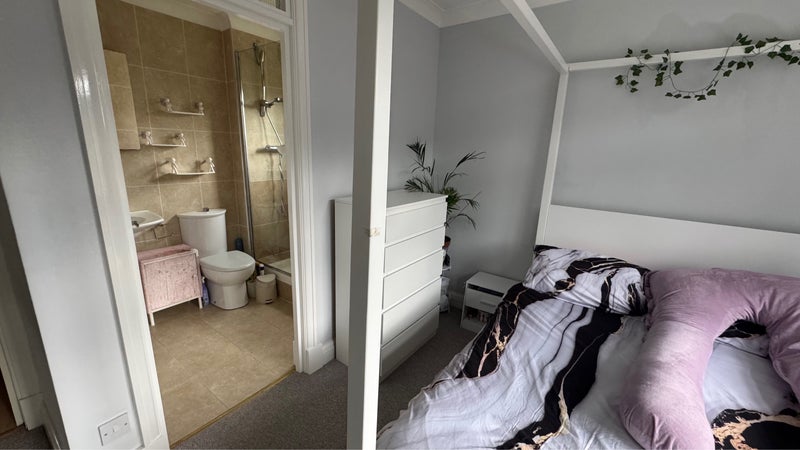 The flat is shared with just one other person (female), who has her own separate bathroom, so you’ll have a private ensuite room. She has a cute little cat.