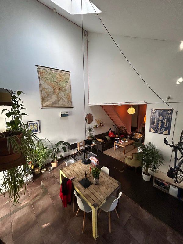 The space is a nice size to work in, play in, make stuff in, and the room is also large enough for hobbies/making, depending on what you're up to. The flat has a spacious communal living area featuring high ceilings and lots of light.