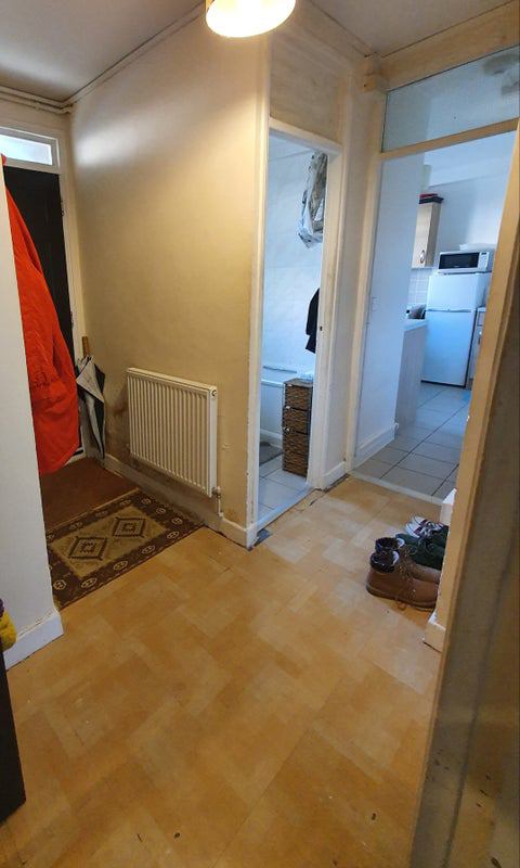 Pictures show the same room in different states. The 3rd and 4th picture is how it looks currently. A sofa, larger TV, large double clothes rail and a 6 squares storage unit have all been added to the room. Ignore the bike in the picture.