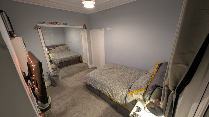 Double bedroom for one person, available to rent at £465 pcm, plus bills and taxes, which are approximately £110 to £130 pcm/person. That includes wifi, energy (electricity and gas), council tax and water. The bedroom is on the ground floor with direct access to the backyard. It comes with a small wardrobe, chest of drawers and a small shelf. The new tenant will have to get their own bed and there is room for a desk or more storage. The photos show the room with the current occupants bed, TV, etc, which are not part of the room.
