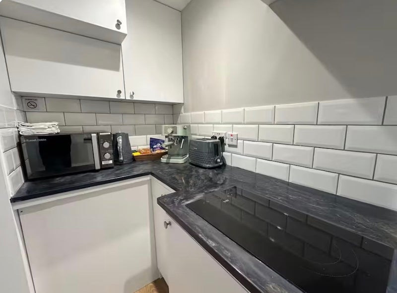 Kitchen for flexible meals — prepare a quick breakfast before work or a late dinner after a shift, without needing to leave the building.