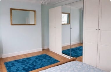 Hi. I am letting two double rooms on 1st floor of my house. The first room is larger at the front of the house with 3 large wardrobes, a king size bed, and dressing table. (£850 Inc of bills)