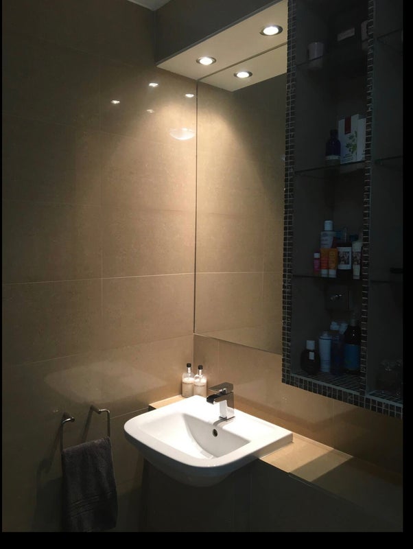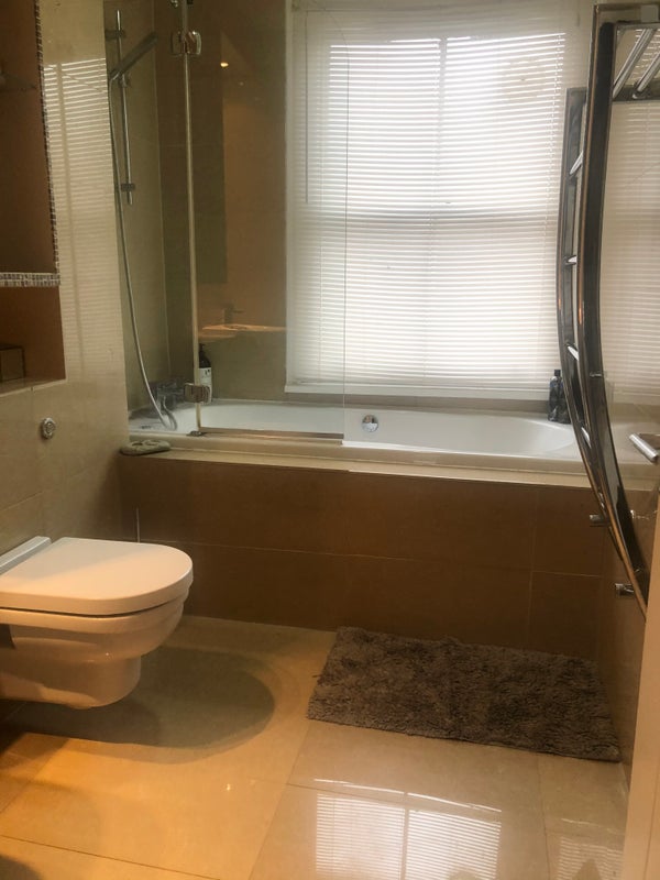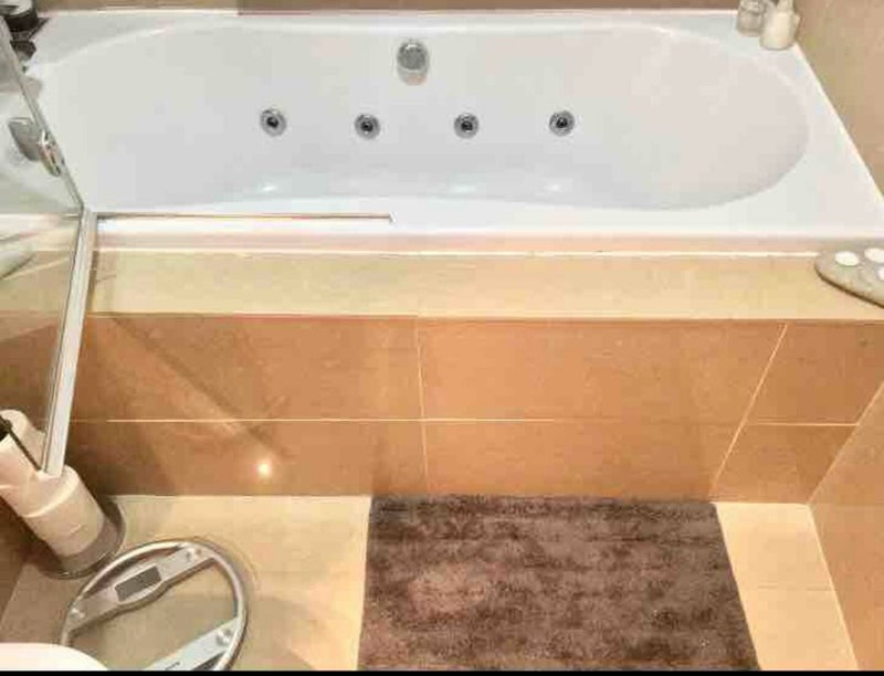 Shared bathroom with a powerful shower and a deep jacuzzi bath — ideal for relaxing after a long day.