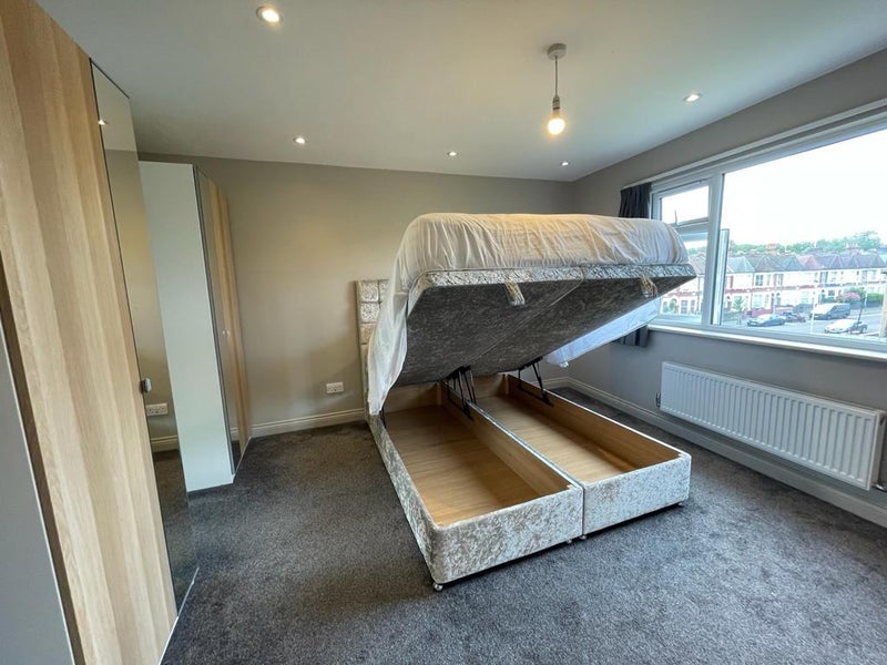 This lovely home is newly renovated and furnished. There is a luxury ensuite off the very large bedroom, with a large shower cubicle. The bedroom has 2 wardrobes and a full ottoman storage king size (5') bed.
