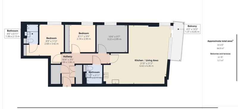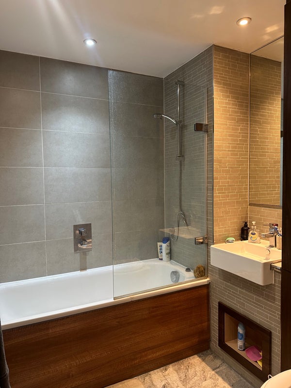 There are two bathrooms in the flat — as one of the bedrooms is en-suite, you would be sharing the bathroom with just one other person, which we have never had problems doing. The property is equipped with all modern appliances needed for a comfortable life, including a good washing machine, dishwasher, and underfloor heating.