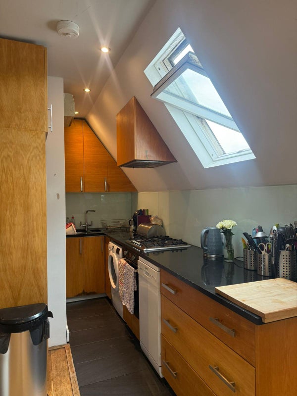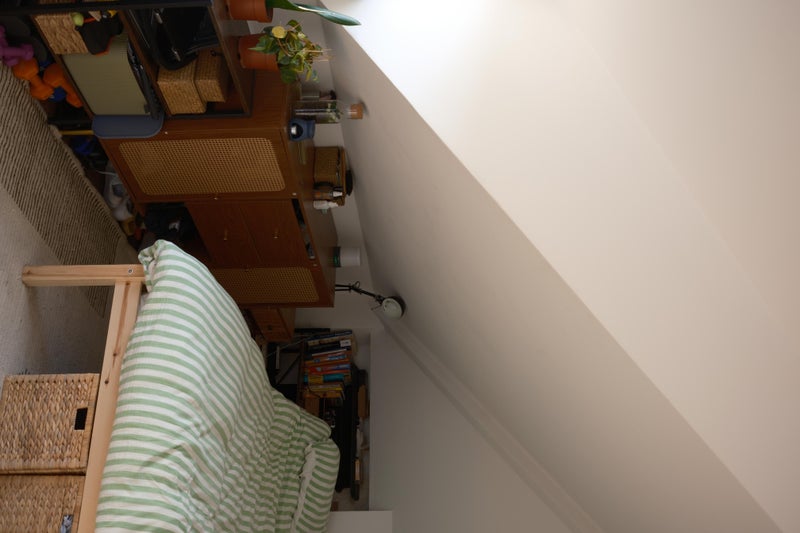 The room itself is a loft space with a slanted ceiling it's got a lot of character, proper cosy attic vibes, but with enough vertical space that it doesn't feel cramped. It fits a longer double bed and gets nice light. I'm flexible on furniture, it can come with some, none, or we can figure something out together depending on what you need.