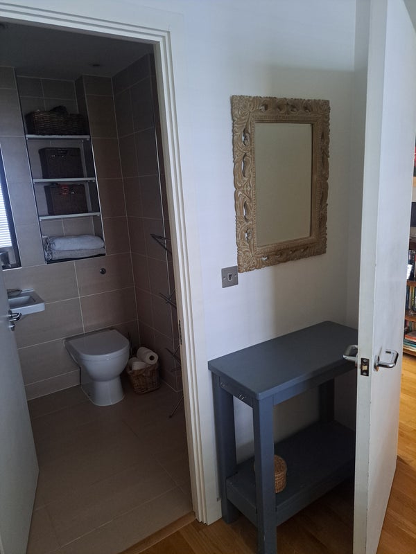 We offer a quality living space to share including a roof terrace with views. The room is decent size, has an en suite bathroom and built in wardrobes. We have a 4 1/2 yr old Cavapoo called Sami who accompanies us on our London trips.
