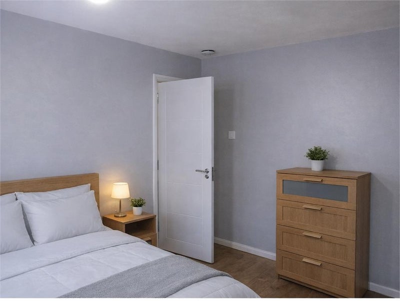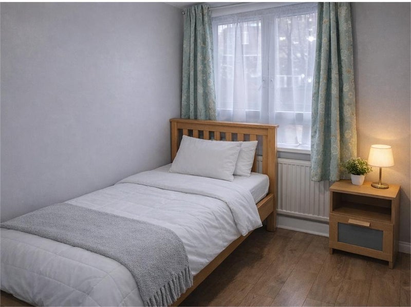 The flat has been recently refurbished, featuring new flooring throughout, a modern bathroom, and a separate toilet suite, making it practical and comfortable for shared living.