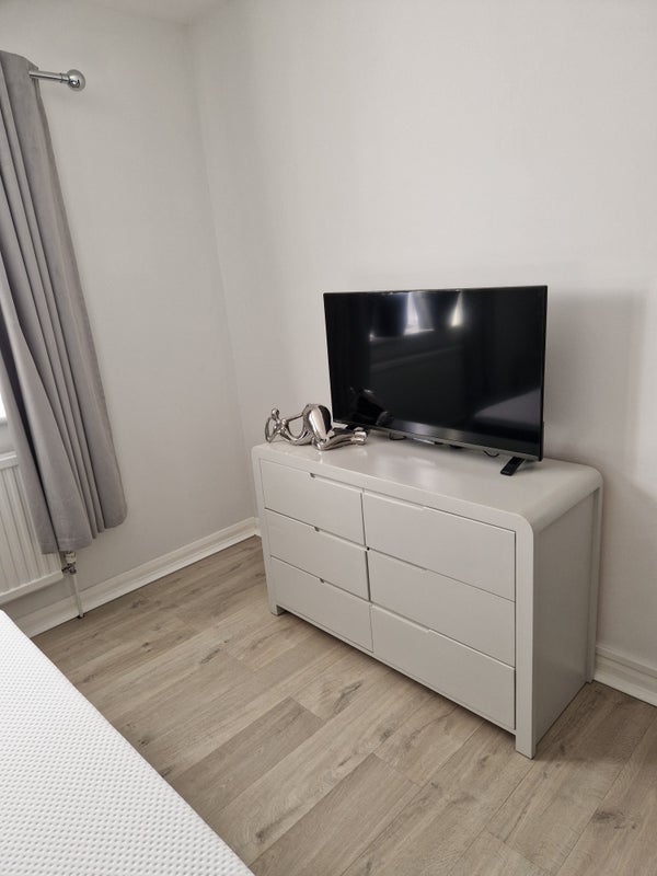 A freshly decorated double bedroom, brand new king size bed, Emma mattress and wide-screen tv. Use of kitchen and bathroom, shared with landlady. Broadband, Netflix, and all bills included. Use of washing machine and tumble dryer.