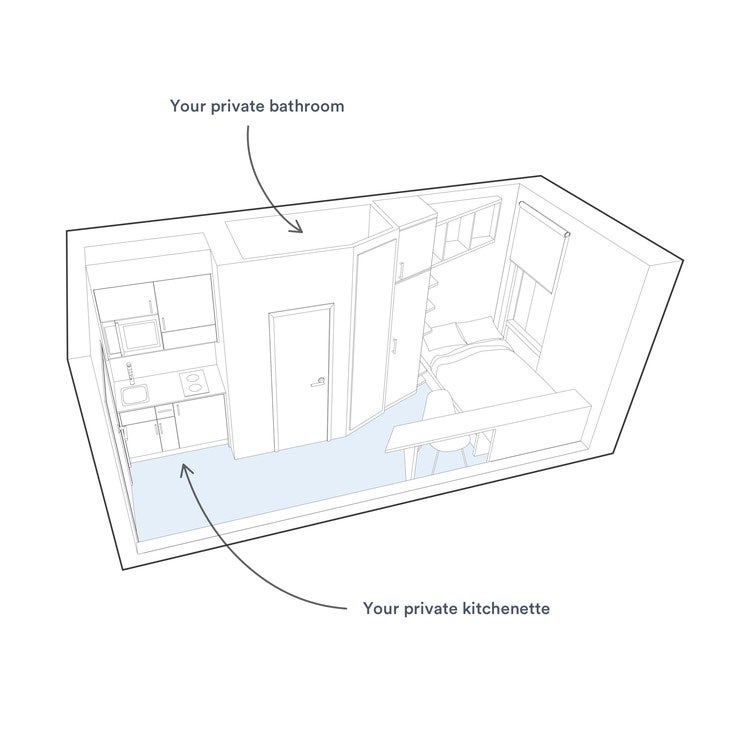 • Co-working spaces, cinema room, rooftop, shared kitchens