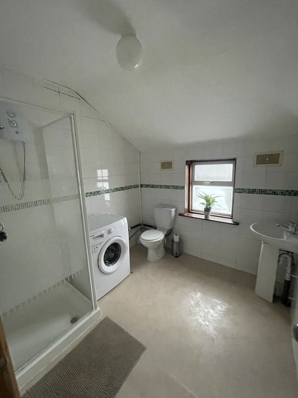 Spacious Bathroom: glass cubicle Shower, W. C. Wash Basin, new Washing Machine.