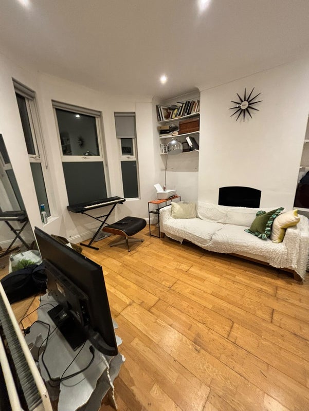 Bright double room in NW10, within 10 mins walk of Kensal Rise (Mildmay) and Kensal Green (Bakerloo). Shared kitchen, living room, garden. Bedroom part furnished with bed, chest of drawers and wardrobe. Initial tenancy until mid September with option to extend.