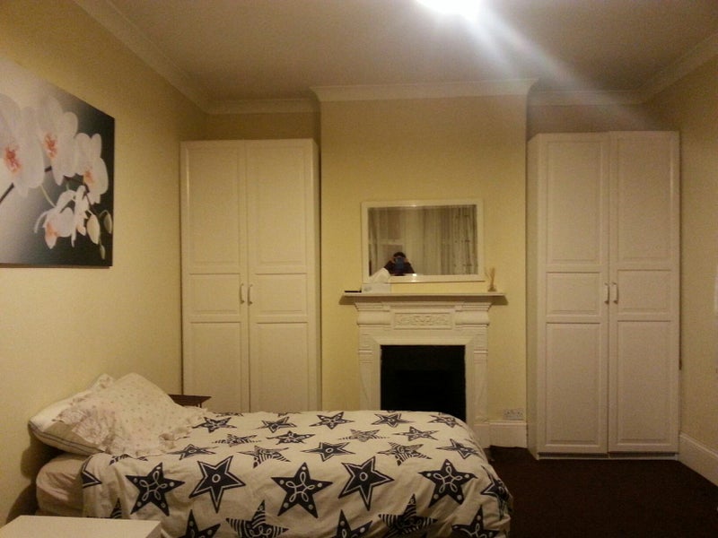 Tenants v friendly, polite and respectful - The room is spacious with 2 big bay windows) and a decorative fireplace, Double wardrobe, chest of drawers, study desk, chair, wood flooring, fully double glazed, beddings, 24 hours hot water, washing machine, central heating, fully equipped kitchen, dining table etc , wifi,.. Offstreet parking available. V Safe and peaceful area.