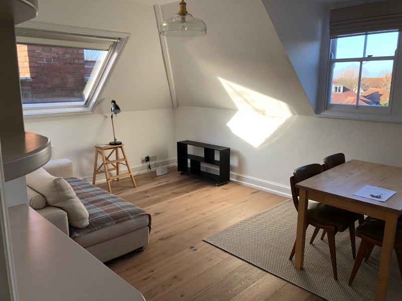 This bright, spacious top-floor flat sits in the lovely Mapesbury Conservation Area. With large windows throughout, it’s full of natural light, and both double bedrooms are roomy enough for desks and plenty of storage. The flat is fully furnished.