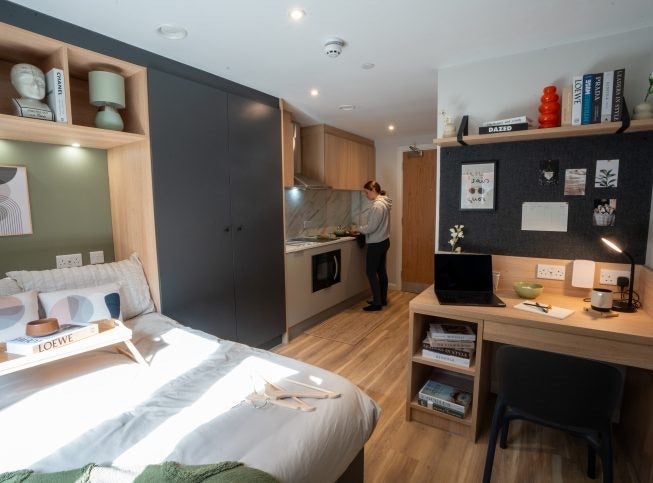 • Fully furnished (bed, desk, wardrobe, storage)