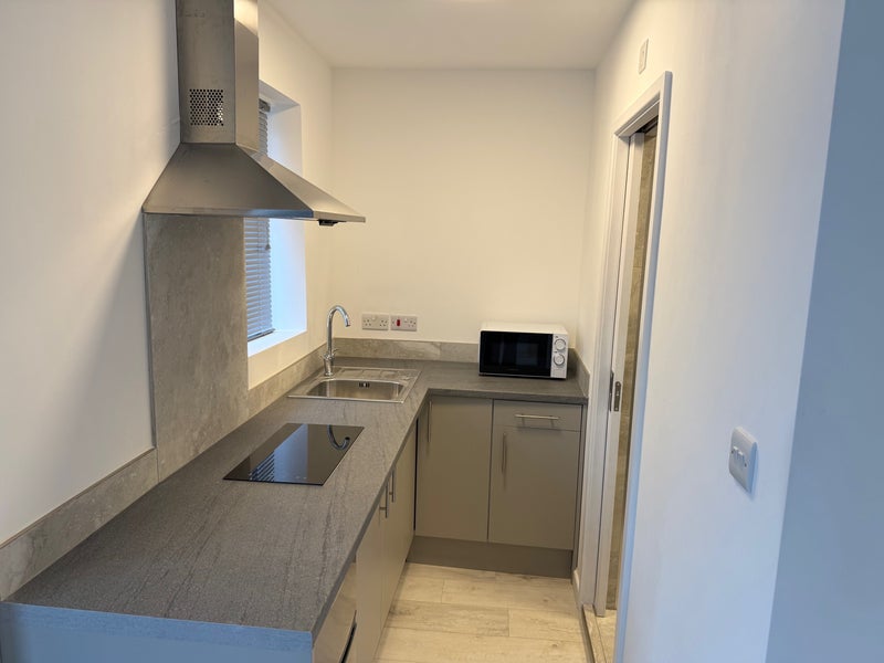 The property has a stylish shared bathroom and a modern kitchen with essential appliances. Large windows provide plenty of natural light, creating a warm and comfortable living space.