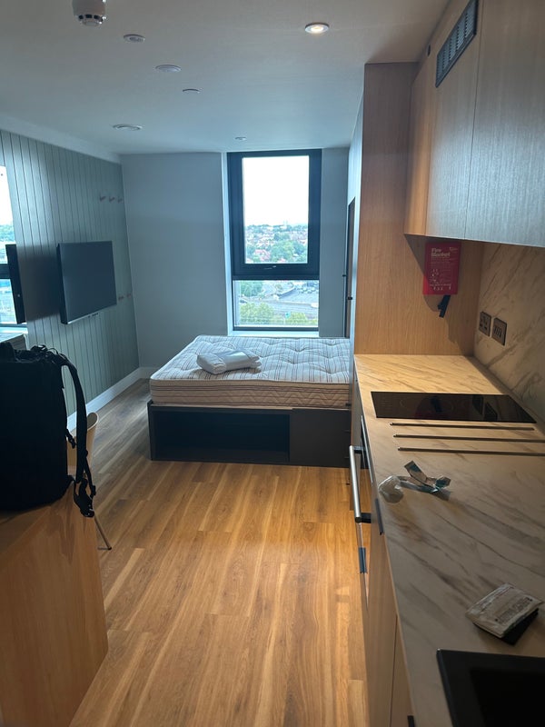 Private bathroom and private kitchen. Located on the 8th floor with good natural light and great view. Safe and modern student accommodation with excellent facilities.