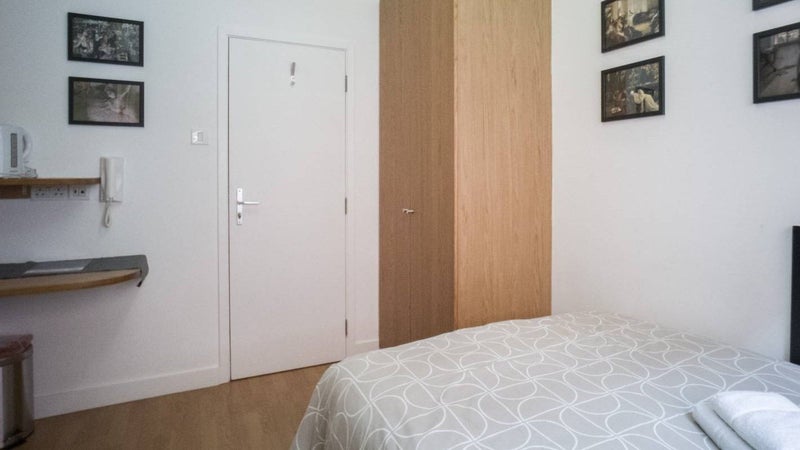 Room features: Double sofa bed, Wardrobe, Fitted table, Chair, Bookcase, Folding table, Flat screen tv, Mirror