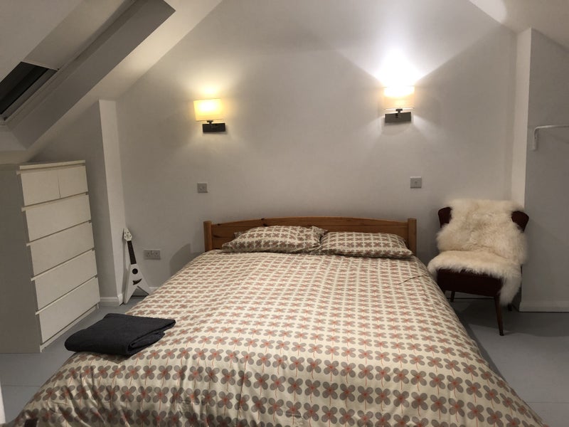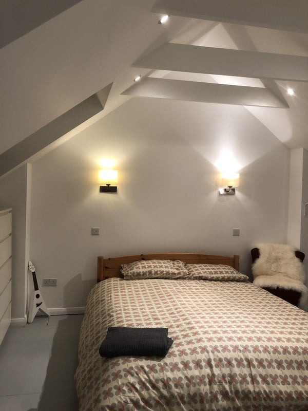 I have a large bright studio room with ensuite and separate small kitchen. It is situated on the top/second floor of my family home. The studio is a conversion in the loft. The studio will be available to rent from March 16th Whilst the studio is self contained it is a shared entrance, access will be through my home. The house is non-smoking, there is no outside access from the studio: