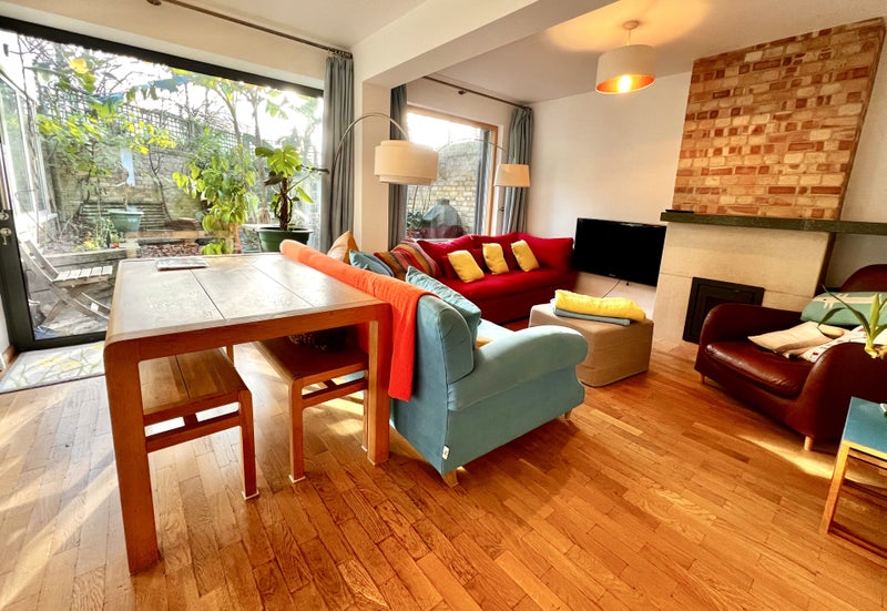 The house is a 2 minute stroll to Gospel Oak overground and a 10 minute walk to Belsize Park or Kentish Town tubes. The house itself is a 3 bedroom place and is really light and airy in the summer and warm and cosy in the winter (We've got a wood burning stove in the front room). It was all completely architect redesigned and totally refurbished a few years ago and so it's still all shiny and new! There is a large lounge and a dining room which opens out onto the south-facing garden, a separate, spacious, well equipped kitchen and a utility room with washing machine and tumble dryer.