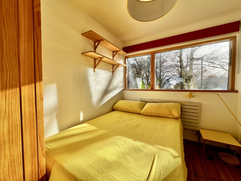 It's a great room, it has a wooden floor and large windows overlooking the garden and is furnished with a new double bed and mattress, chest of drawers and a wardrobe.