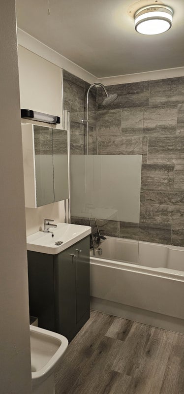 There is a bathroom with a shower, toilet, sink, and mirror (shared). The kitchen has an oven, a cooker, and a fridge-freezer (shared). There is also a dishwasher, washing machine, microwave, kettle, and plenty of storage space (shared). The living room has a dining table and chairs, a sofa, and a TV. There is high-speed internet throughout the flat. There is a large communal garden to the rear of the flat, too.