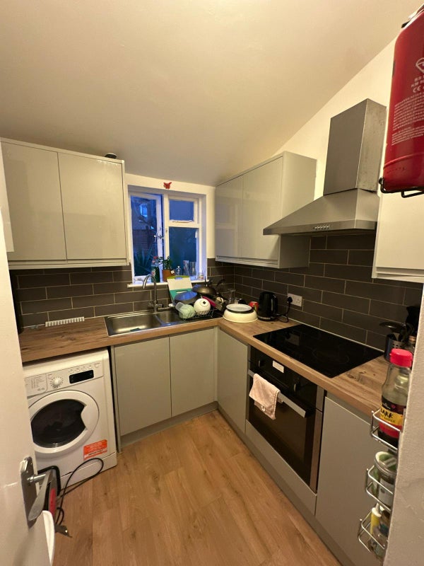 - Room comes furnished with double bed, wardrobe, chest of drawers, bookshelf and end table. We can also request a desk and chair from the landlord.