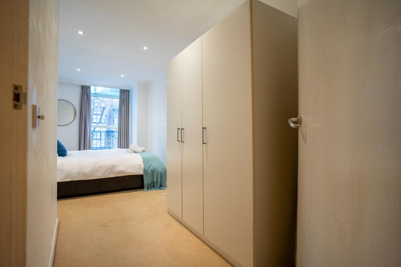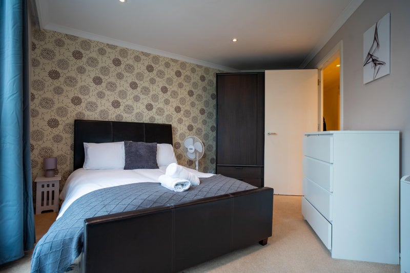 The apartment features a large open plan living and dining area, a kitchen with modern appliances, and two bathrooms which keeps the space convenient and comfortable for everyone living here. The room itself includes a comfortable double bed, wardrobe, and plenty of storage.