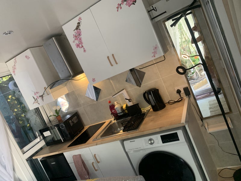 This is a unique cosy studio placed in a tropical green garden, fully furnished, cooker, airfrier, microwave, wash & drier, fridge & freezer, smart tv, internet, insulated walls, heated floor, ideal for one person that appreciates a home feeling and care about the place where lives. All bills included except electricity. Excellent location, 15 min by bus from Woolwich station, 10 min from Welling station.
