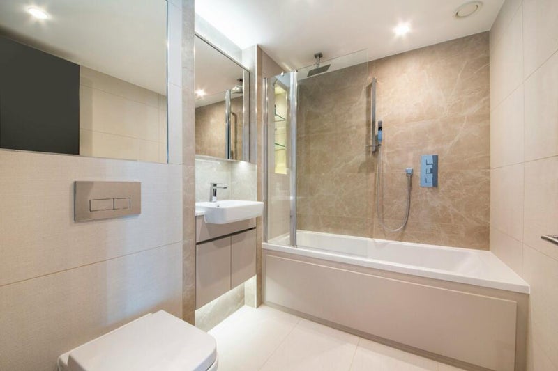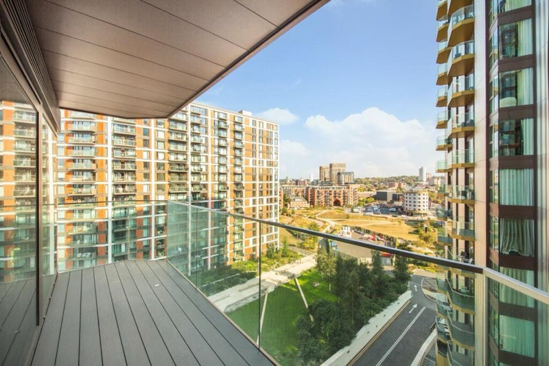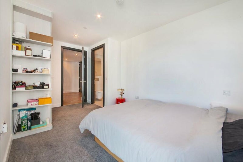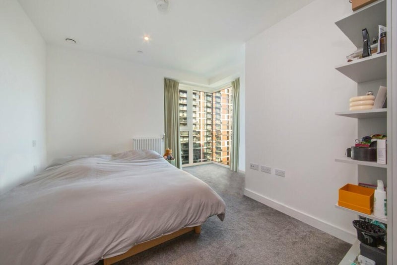 Master bedroom with own ensuite available as part of a flatshare in a 2-bed, 2-bath apartment with open living and dining space. New, high-spec building finished to a very high standard. Big private balcony with great views.