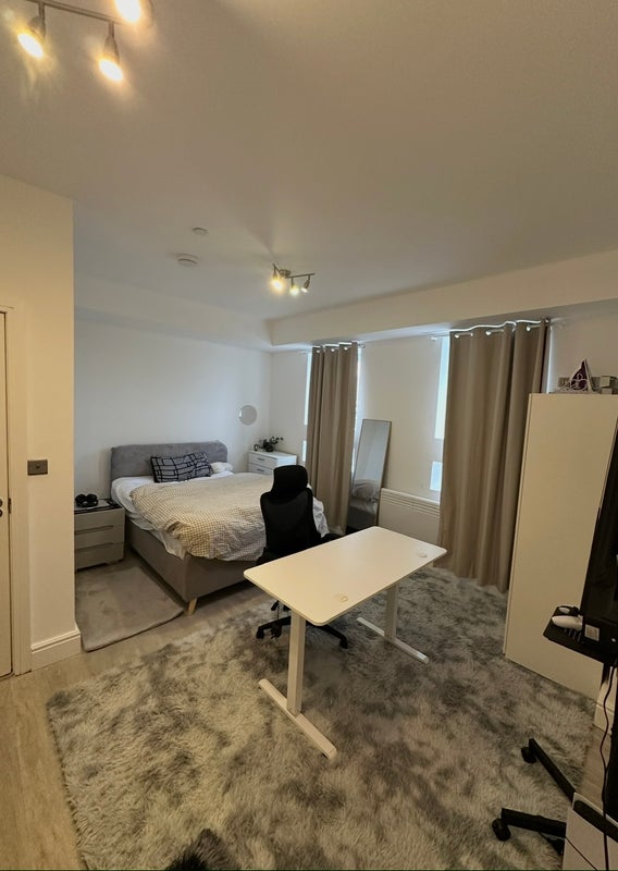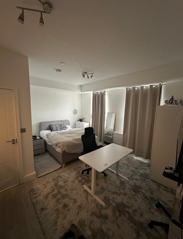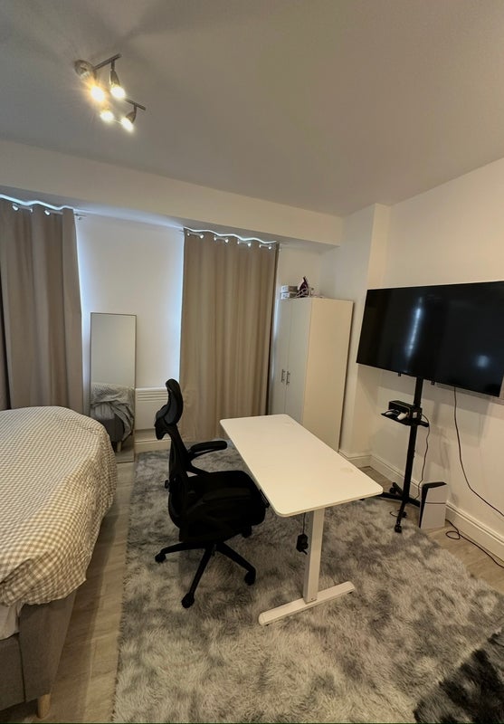 bright, fully furnished en-suite bedroom is available for single occupancy in a modern 4-bedroom, 3-bathroom flat-share.