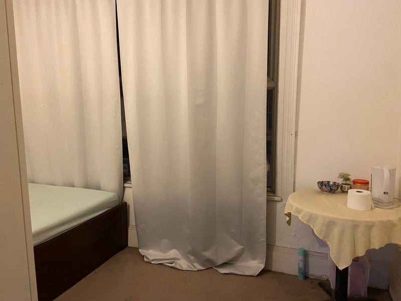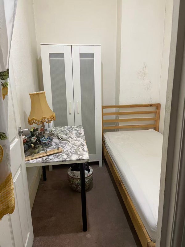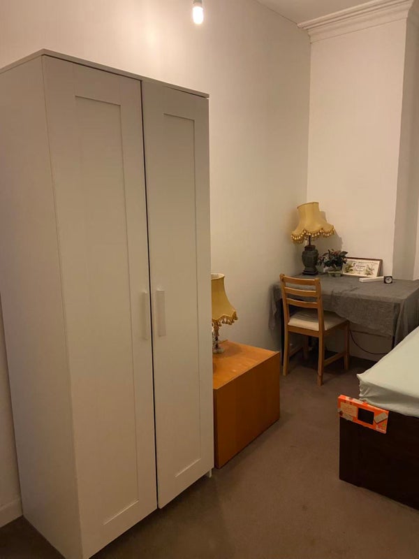 It’s very tidy and clean room, with a single bed, a wardrobe
