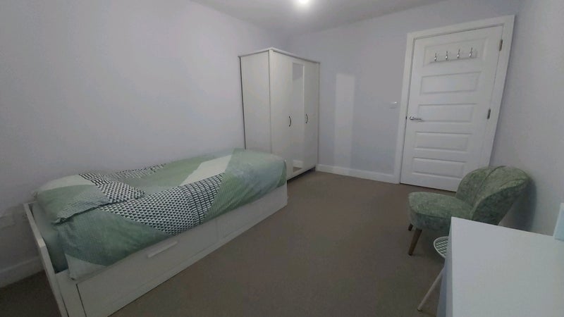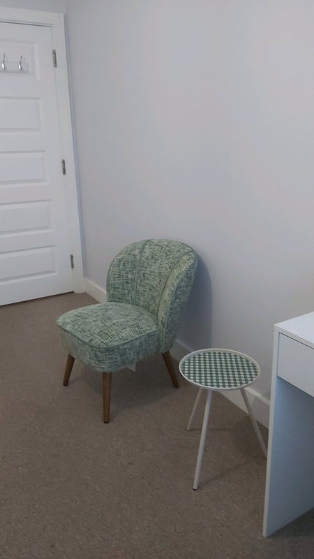 A comfortable double room is available in quiet home (flat) with a live in professional female landlord. The room is furnished with a single bed, wardrobe, dressing table/desk, small comfortable chair and small coffee table.