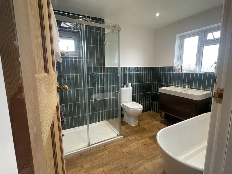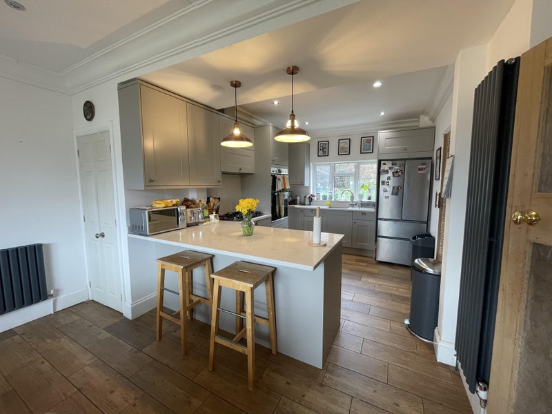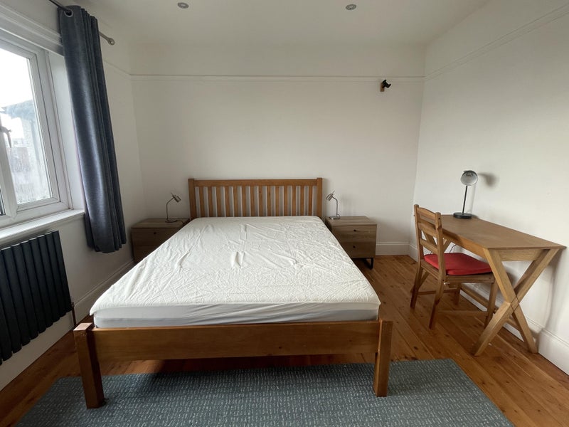 There are 2 furnished rooms with king-size beds available. Shared spaces include a living room, kitchen/dining room, a conservatory and a garden. There is one large family bathroom (separate shower and tub) and a second downstairs toilet.