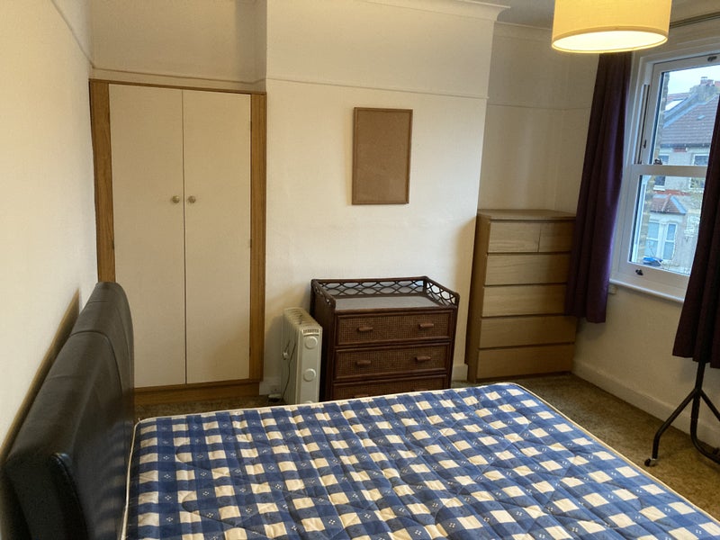This is a double room for a single female lodger. It is the largest bedroom in the house with two front facing windows. You would be sharing the house just with me. A previous lodger stayed for nearly five years. The room currently has a bed, sofa, cupboard, chest of drawers, a clothes rail and a bedside table. I can remove or add furniture as required.