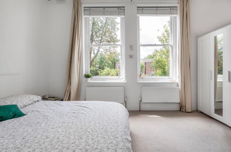 A large king-sized room in a quiet, two-bedroom flat on Lawrie Park Road.