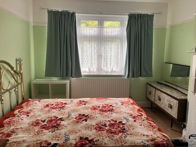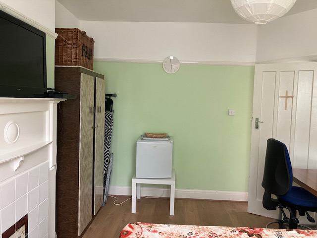 Hi! I have a bright, spacious double room available, with a desk, chair and small fridge. Bed is kingsize.