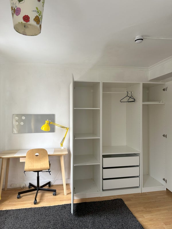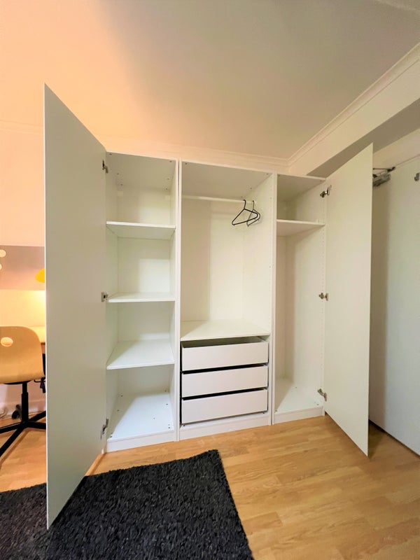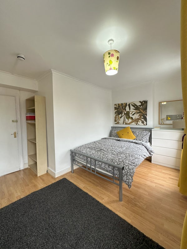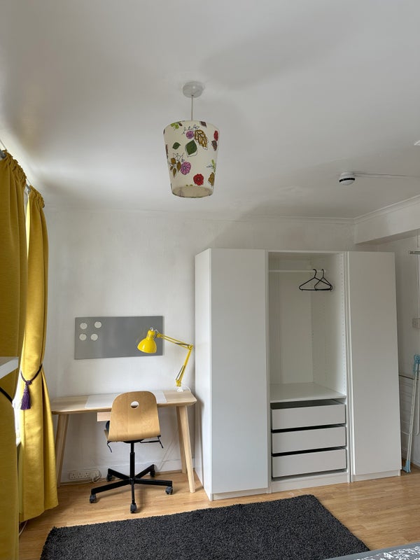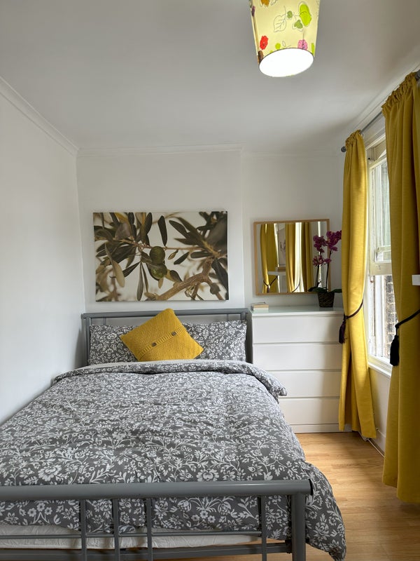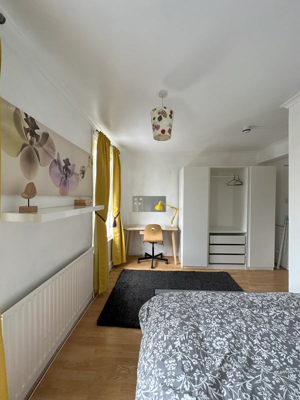 The room has two big windows which let a lot of light in. It is very quiet as the house is on a quiet street. It comes fully furnished with a new double bed, big wardrobe, chests of drawers, desk, chair, bookshelf, pictures, mirror, shelve, etc. We DO NOT provide all the bedding such as (pillows, duvet, duvet cover, fitted sheet).