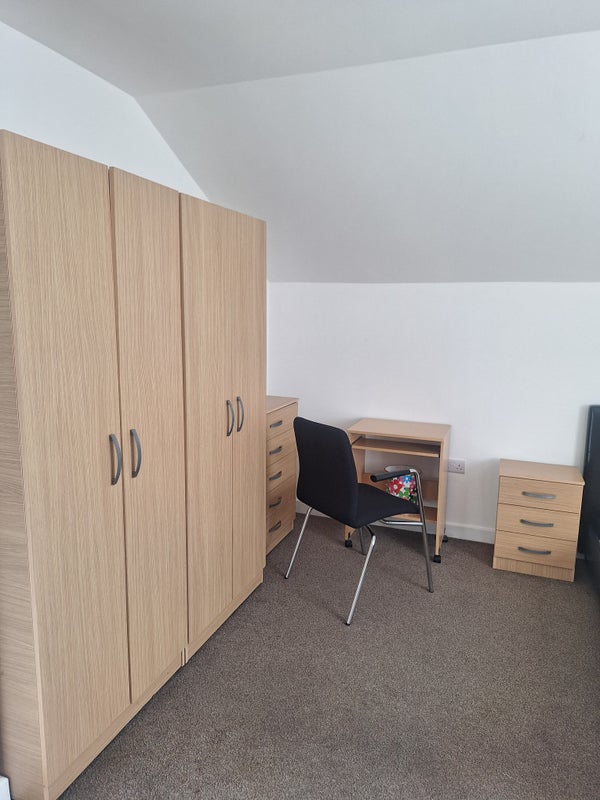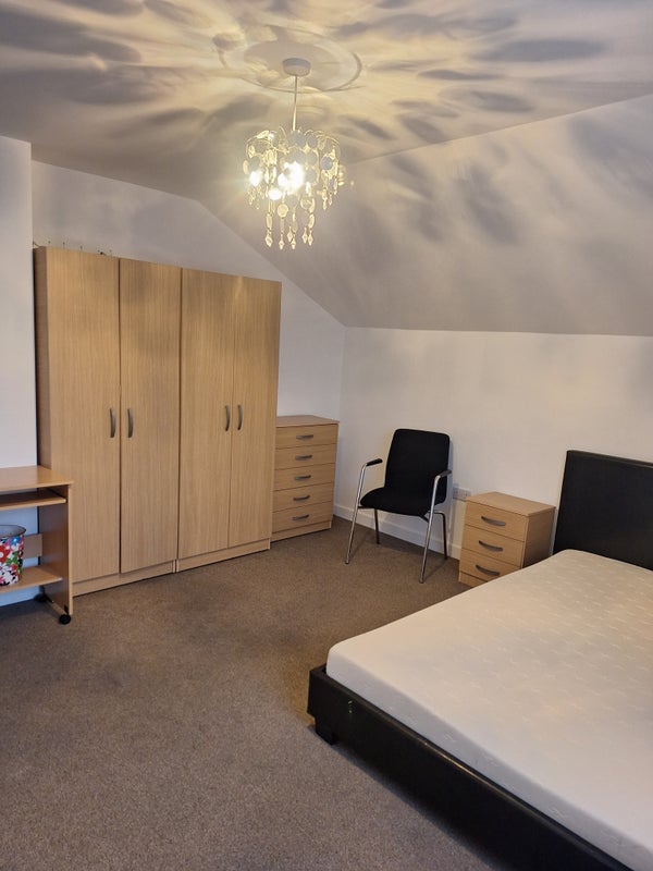 -1 lovely big furnitured double room (£165 per week) with a king-size bed & mattress for a single occupancy, 2 wardrobes, & bedside table, coffee table, desk & chair, lamp, clothes airer, TV, and mirror;
