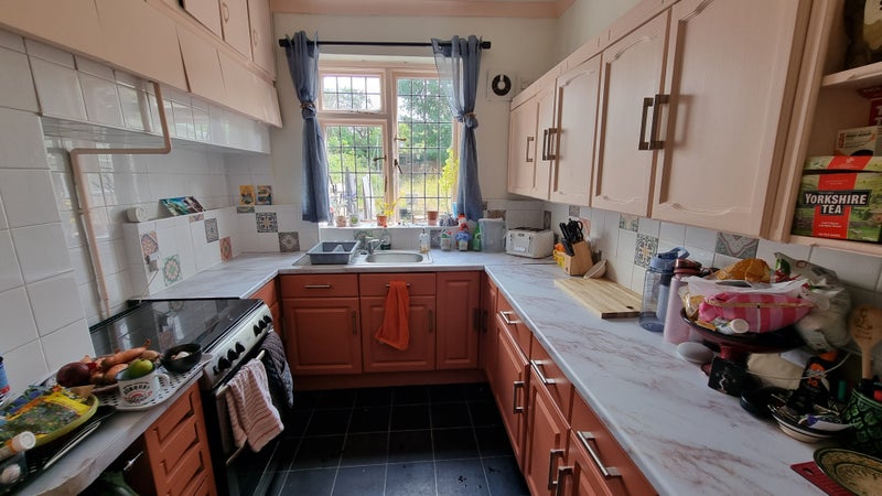 The room is a small double but the rest of the house itself is huge and there is lots of storage space in the rest of the house — two living rooms, a fully equipped kitchen and utility room, and a massive garden. There is room in the living rooms for desk space for any work from home needs. There’s also plenty of space to hang out without ever feeling on top of each other.