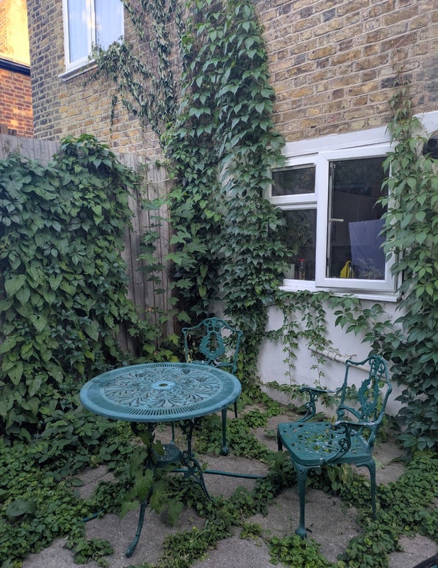 The room is located in a beautiful terraced house. It is furnished and under the roof. We share a large kitchen, a garden and a living room.