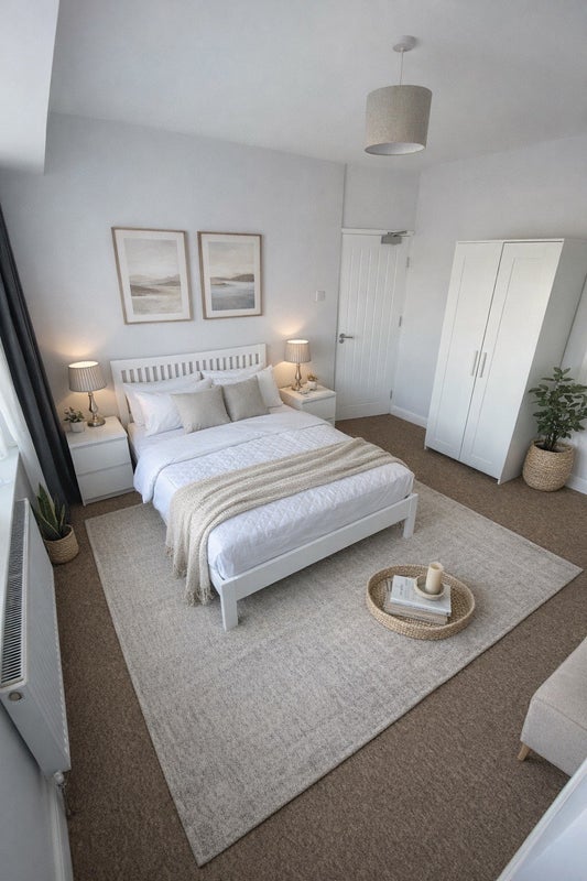 The property is fully furnished with nice furniture in every room and has a fantastic communal lounge with sofa and a TV. There is a large new shared kitchen with range cooker, washing machine, dryer and all the usual gadgets. (Small extra charge via coin meter for washing machine and dryer). All cooking utensils, dishes, plates etc provided with lots of dedicated fridge, freezer and cupboard space for each tenant to store their own food.