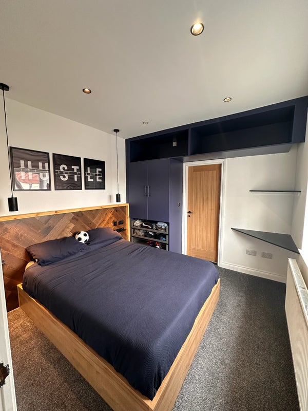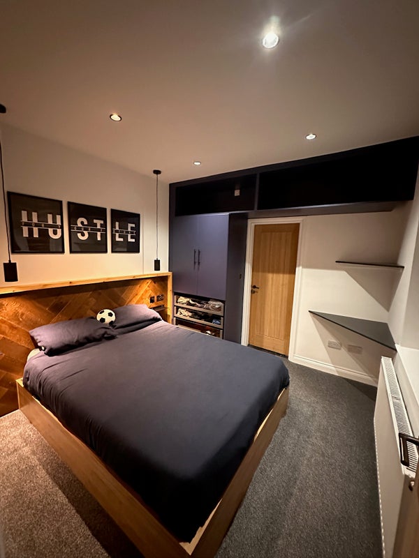 There is excellent storage in the bedroom, with a built in double wardrobe and ottoman double bed.